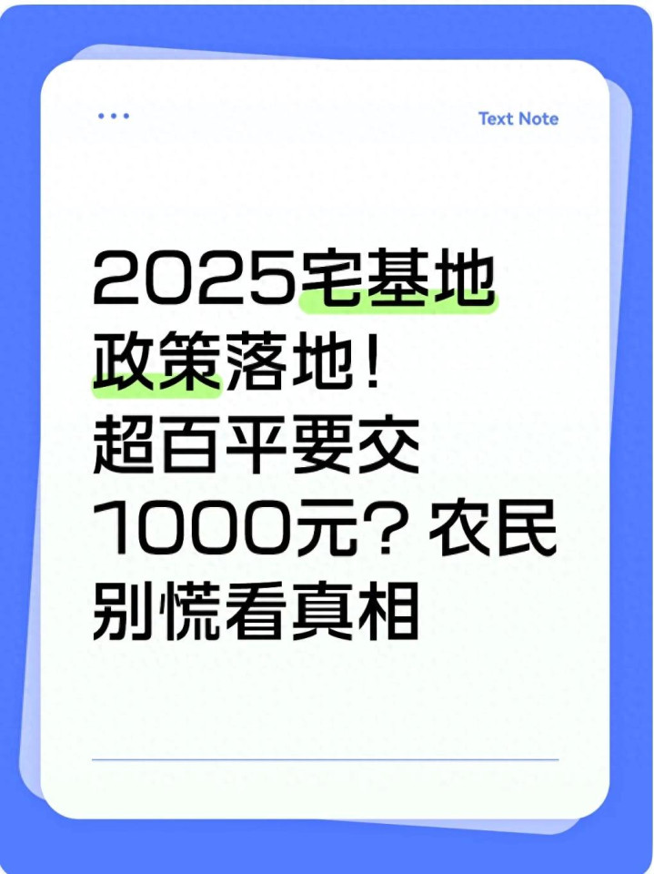 今天就用大白话给大家说清楚:这些说法不是全国统一政策,既不能直接信也不能完全不信,核心要看你所在地区的具体规定和你家宅基地的实际情况。2025年中央一号文件明确了宅基地管理“保障权益、节约集约”的大方向,各地也在推进改革试点,但“一刀切”收费、超百平必交1000元的说法,是对政策的片面解读,千万别被误导。